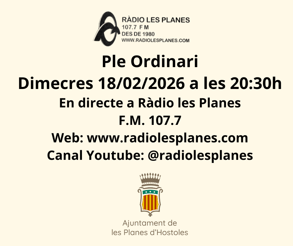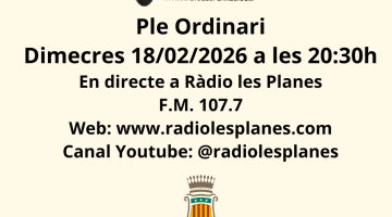 Dimecres hi haurà Ple Ordinari de l’Ajuntament de Les Planes d’Hostoles