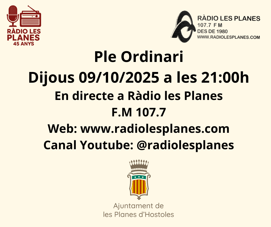 .Retransmissió en directe dels plens de l’Ajuntament: Aquesta retransmissió permet escoltar en directe tot el que es discuteix en una sessió plenària de l’Ajuntament de la veu de l’alcalde i els regidors.